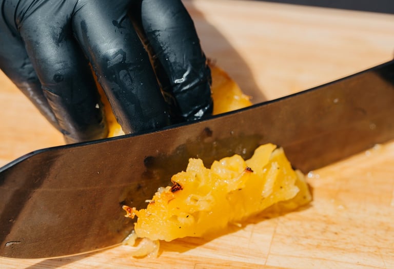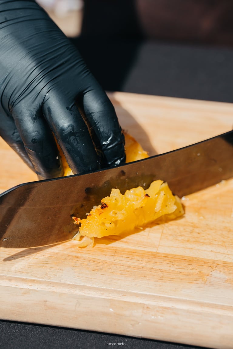 Ananas rôtis pendant deux heures au brasero, longuement confits par la chaleur et la fumée.