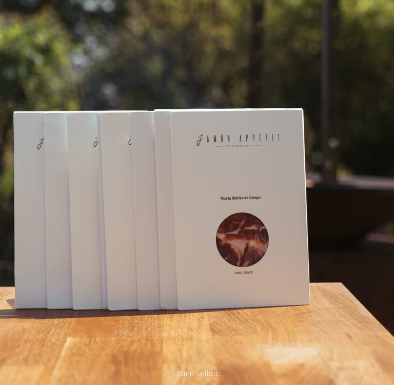 Jámon Appétit valorise le travail des artisans espagnols et met un point d'honneur à respecter chaque étape du processus de fabrication. Les porcs sont élevés en semi-liberté ou en totale liberté, nourris principalement de glands et d’herbes sauvages, ce qui confère au jambon ses notes subtiles de noisette, de sous-bois et de fruits secs.