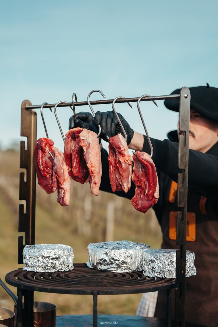 Cette passion pour les produits d'exception, nous la mettons aussi au service de vos événements. Découvrez nos prestations traiteurs & show culinaire autour de la cuisine au feu de bois.