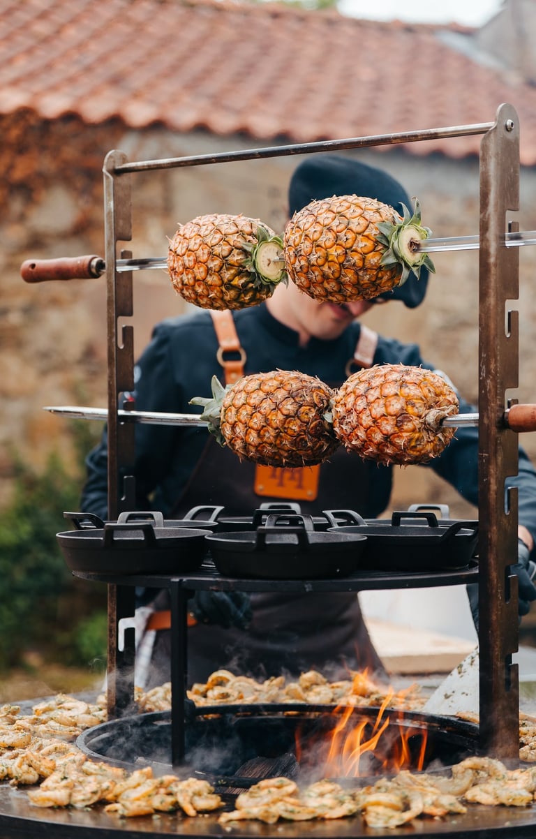 Cuisine au brasero pour mariage, anniversaire ou événement d'entreprise. Une expérience culinaire unique qui marque les esprits. Les Roublards se déplacent dans tout l'Ouest (Loire Atlantique, Vendée, Bretagne, Charente-Maritime, Mayenne ...) pour vos événements et réceptions privés.