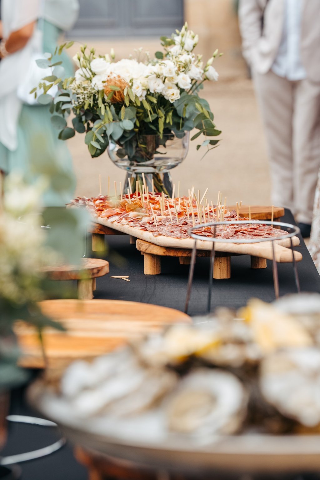 Tout au long de la journée, la magie du lieu a accompagné chaque instant. Le Château de la Voirie, avec son identité champêtre et raffinée, a résonné avec nos préparations, créant une harmonie parfaite entre l’histoire, le terroir et la convivialité. La collaboration avec la Cave de Passy pour la sélection des vins a une nouvelle fois été un atout clé, garantissant des accords justes et appréciés par les mariés comme les convives – tous ravis de l’expérience.